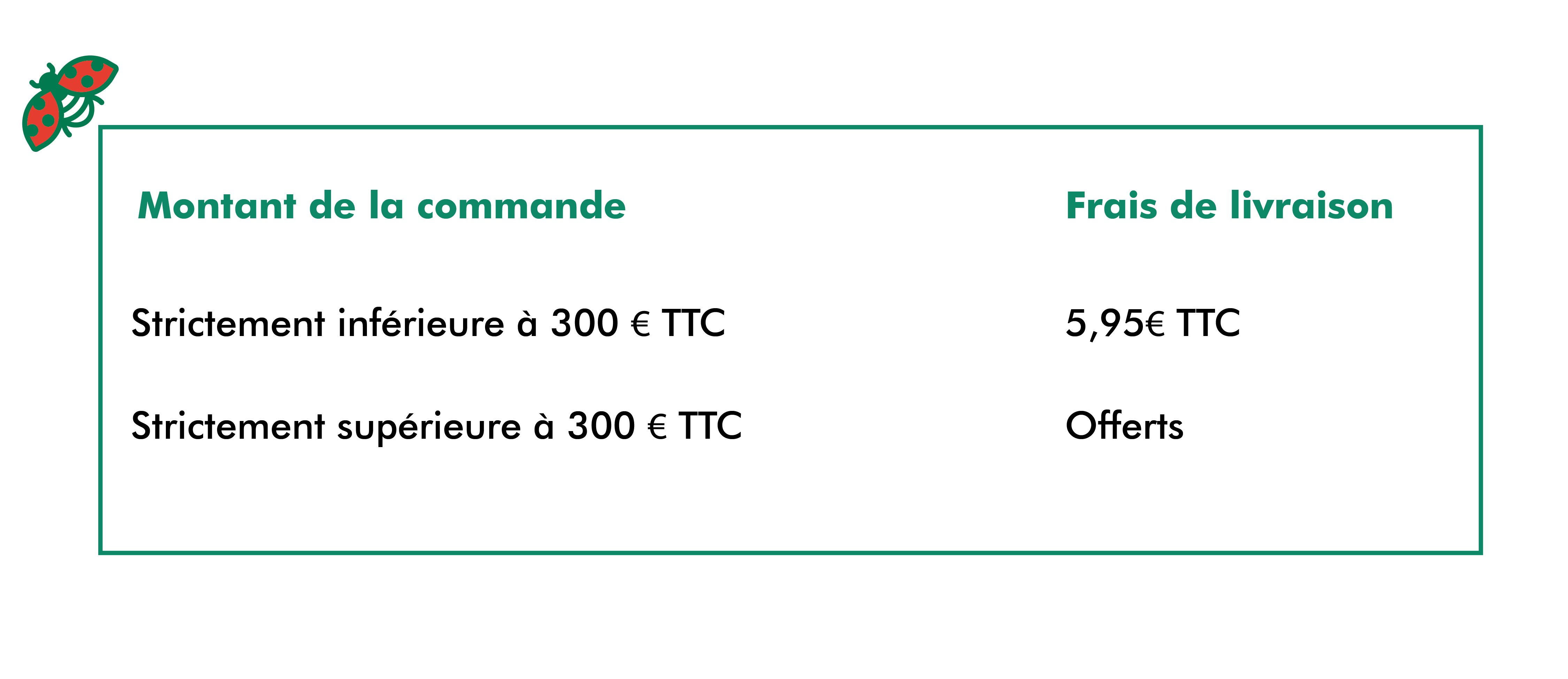 Les délais s'entendent en jours ouvrés et correspondent à des délais moyens de préparation et d'acheminement de la commande en France Métropolitaine compris entre 3 à 15 jours ouvrés.
