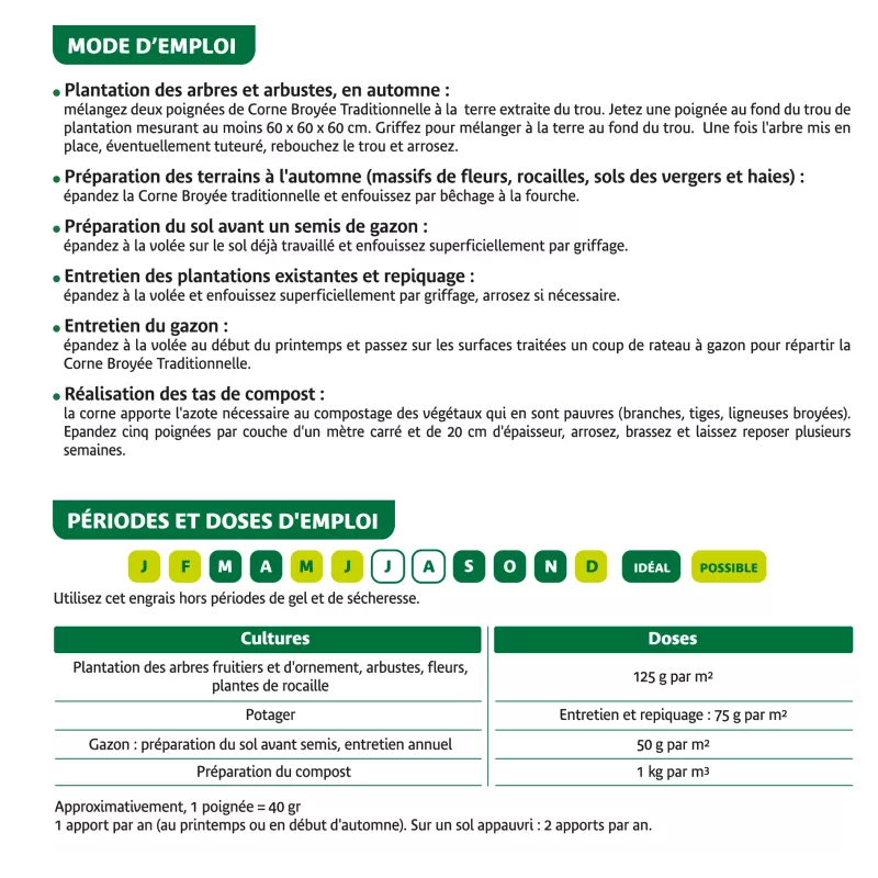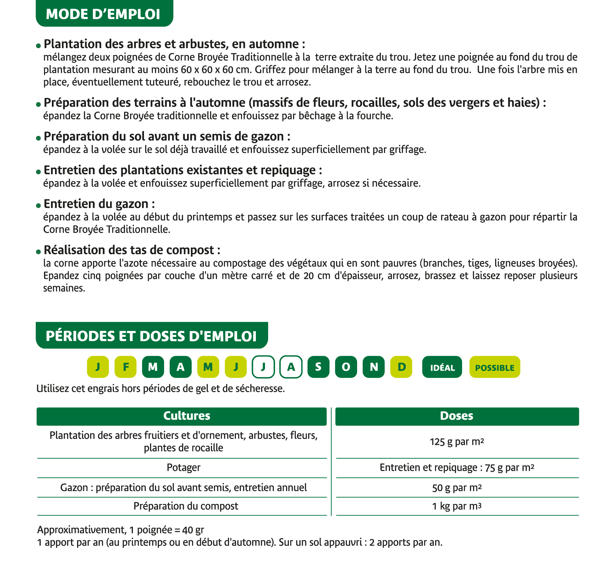 Convient également en fertilisation de fond pour le potager et toutes les autres cultures.