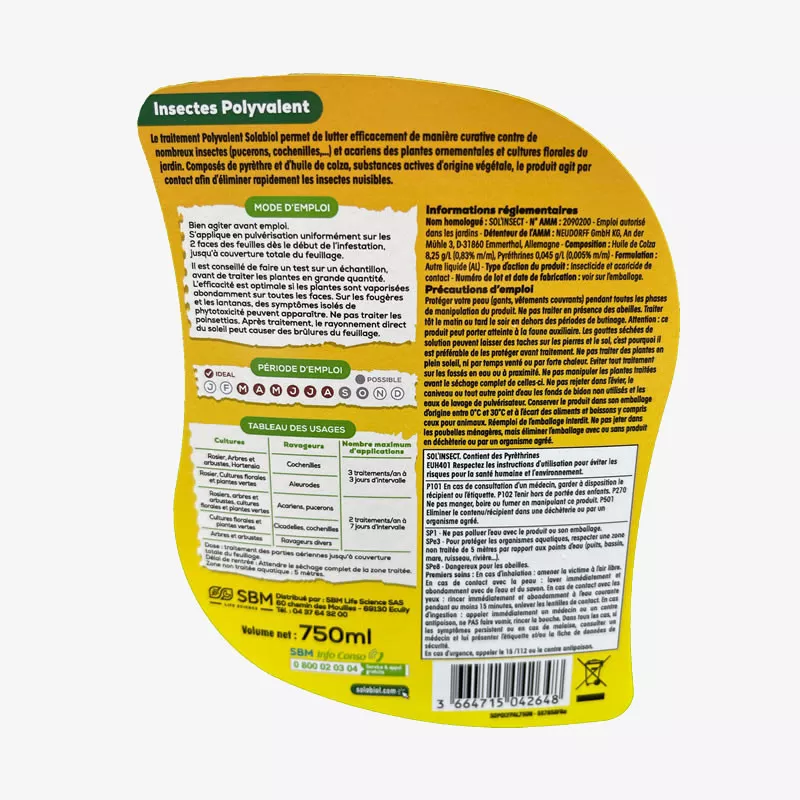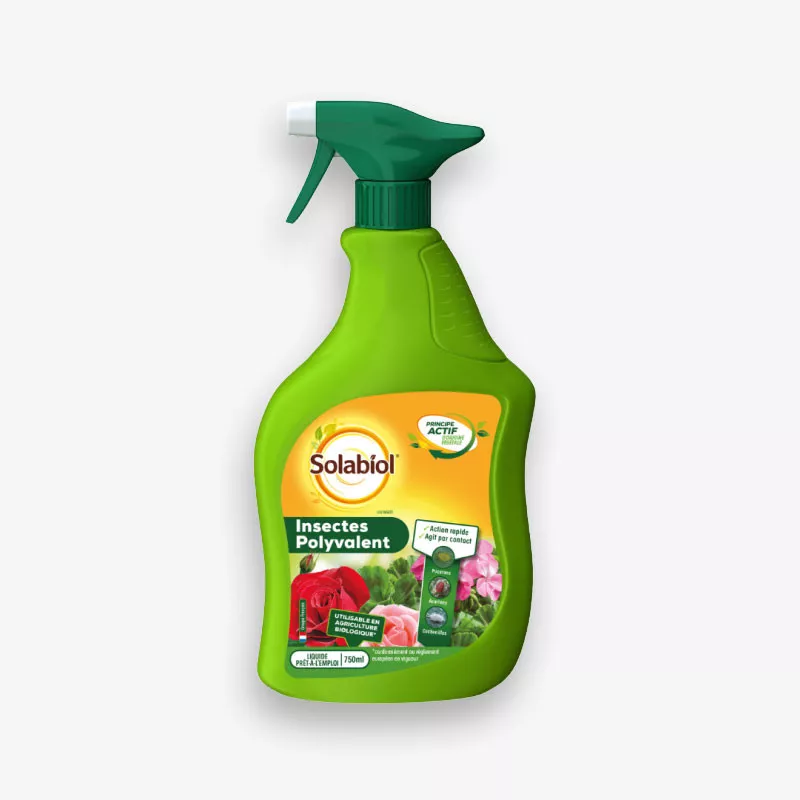 L'Insectes Polyvalent prêt à l’emploi 750 ml permet de lutter efficacement de manière curative contre de nombreux insectes (pucerons, cochenilles, acariens, aleurodes...) des plantes ornementales et cultures florales du jardin.