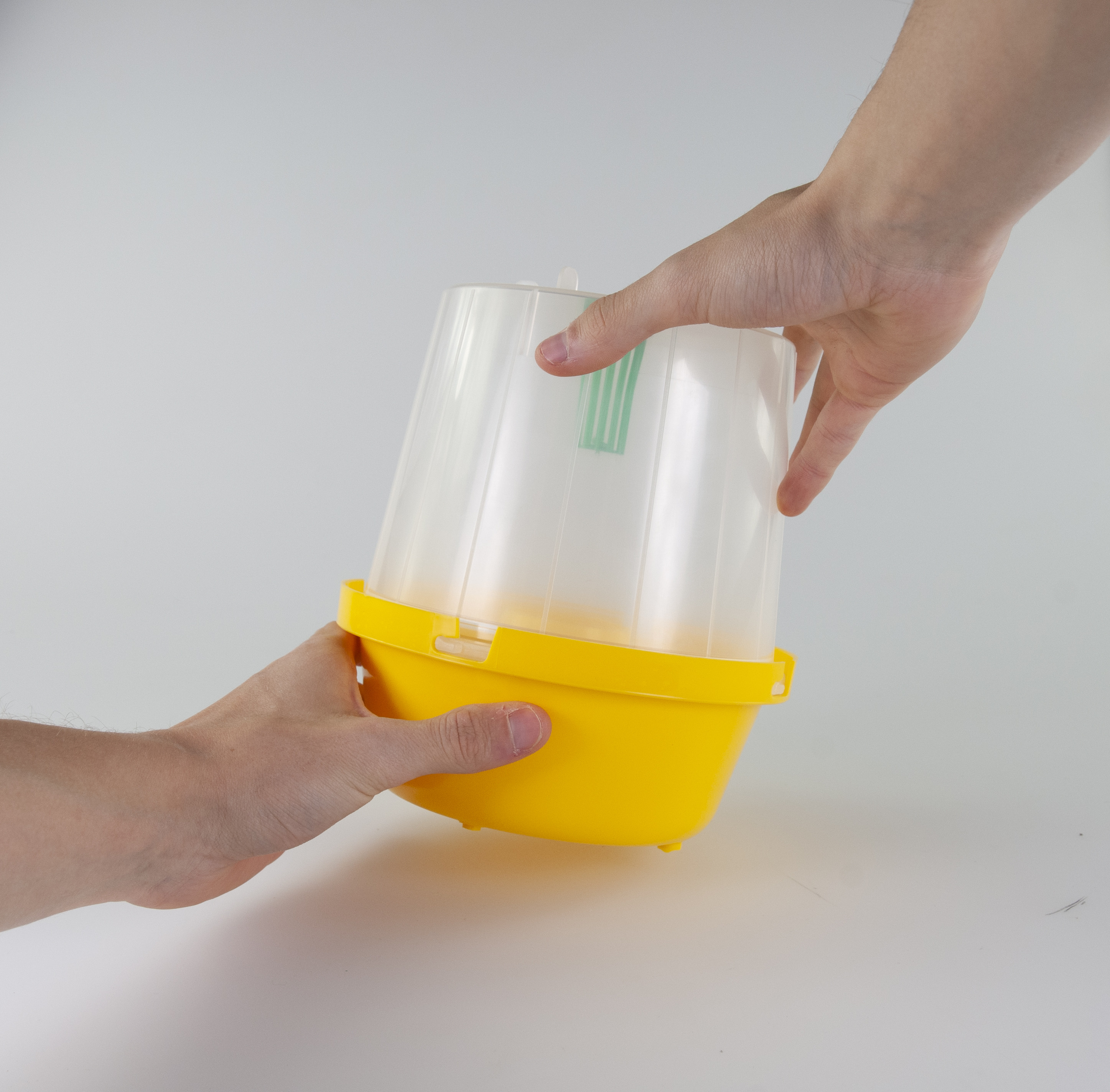 Le piège complet est composé de la carte TMA imprégnée d’un attractif et d’un piège McPhail.