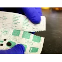 A travers le goutte à goutte, le produit s’étale sur le papier buvard.