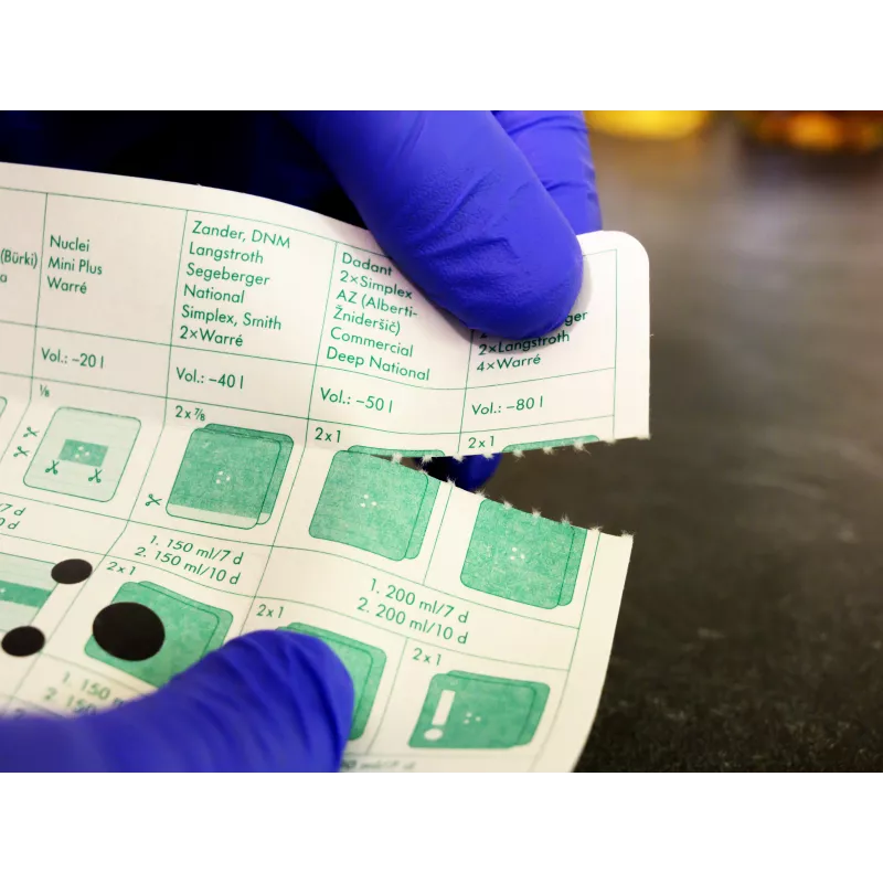 Grâce à la pré-perforation le papier buvard s'adapte facilement pour une diffusion optimale du produit aux températures extérieures et aux systèmes de ruches.