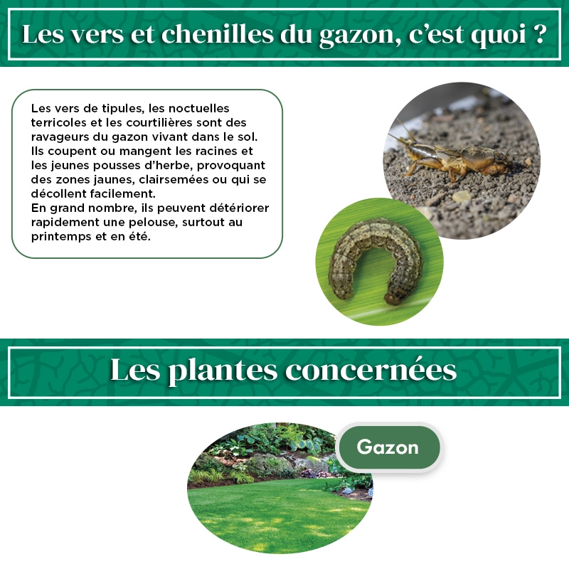 - S’assurer de la présence des larves au moment du traitement (souvent fin de printemps ou début d’automne suivant les espèces)