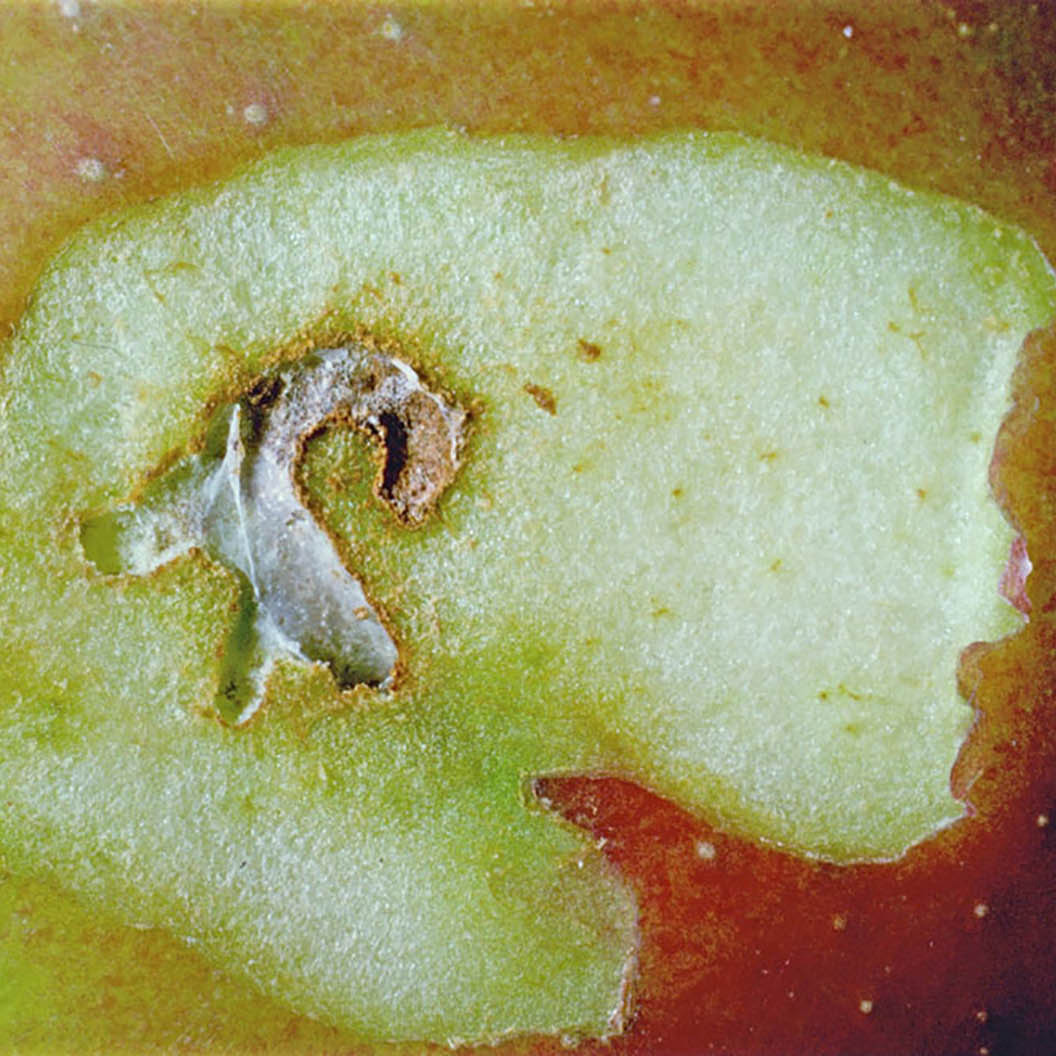 La petite tordeuse des fruits s’attaque au fruit dans lequel elle creuse des galeries et des orifices en surface pour évacuer ses excréments.