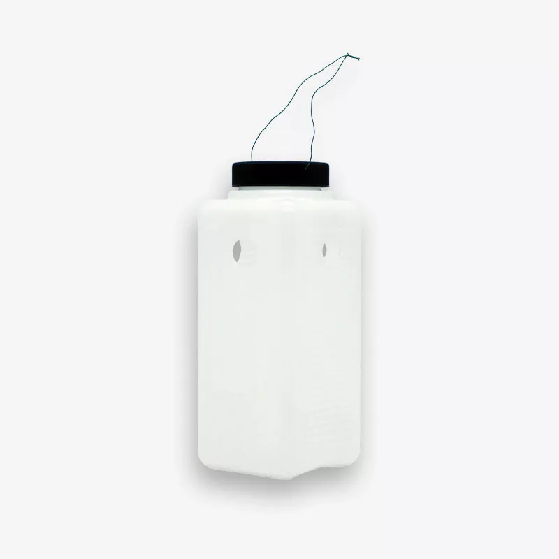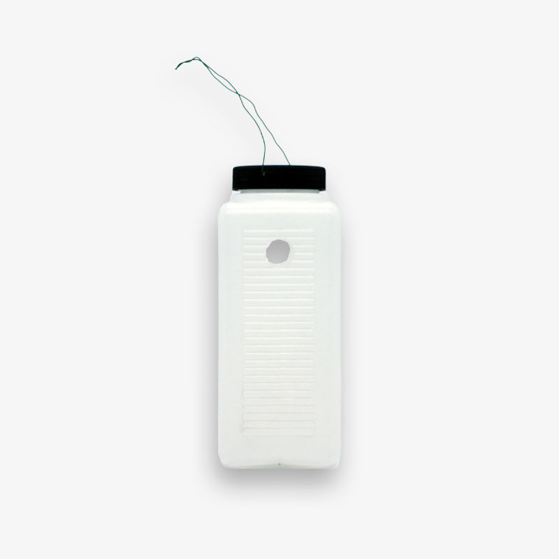 Munie de trous, elle permet de piéger les ravageurs ciblés attirés par le liquide attractif.