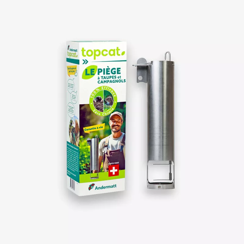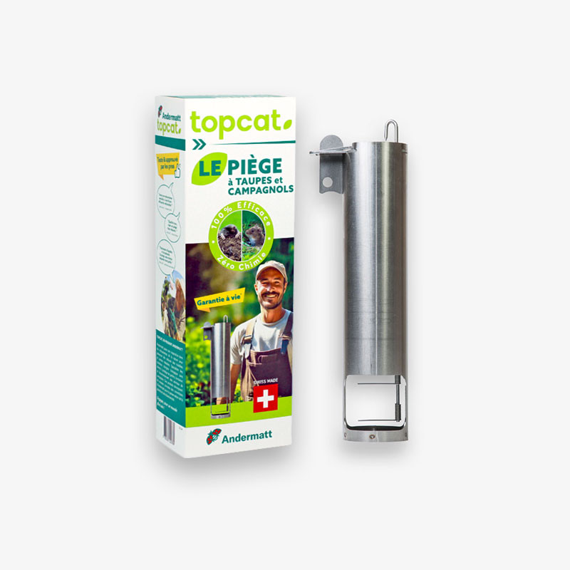 Le piège à taupe Topcat est un système de piégeage avec déclenchement sensible et rapide.